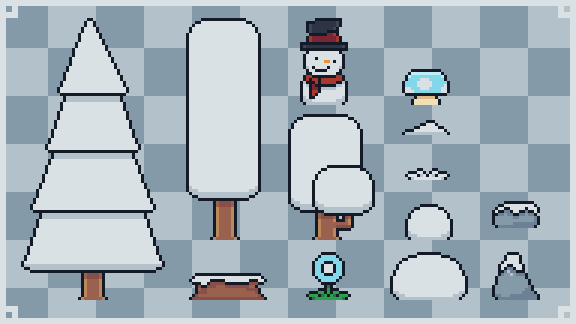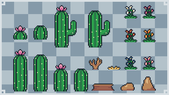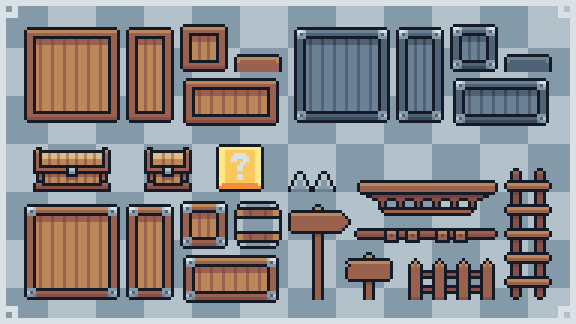 All the tiles in this set are 16x16, although some props are larger such as the sign post. This tileset is completely beginner friendly and ready to be dropped into your projects.